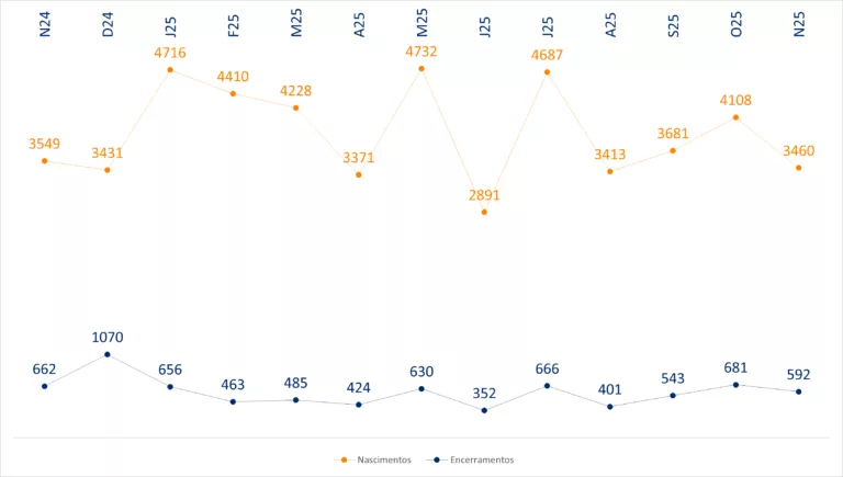Nascimentos, Encerramentos e Insolvências [Novembro 2025]